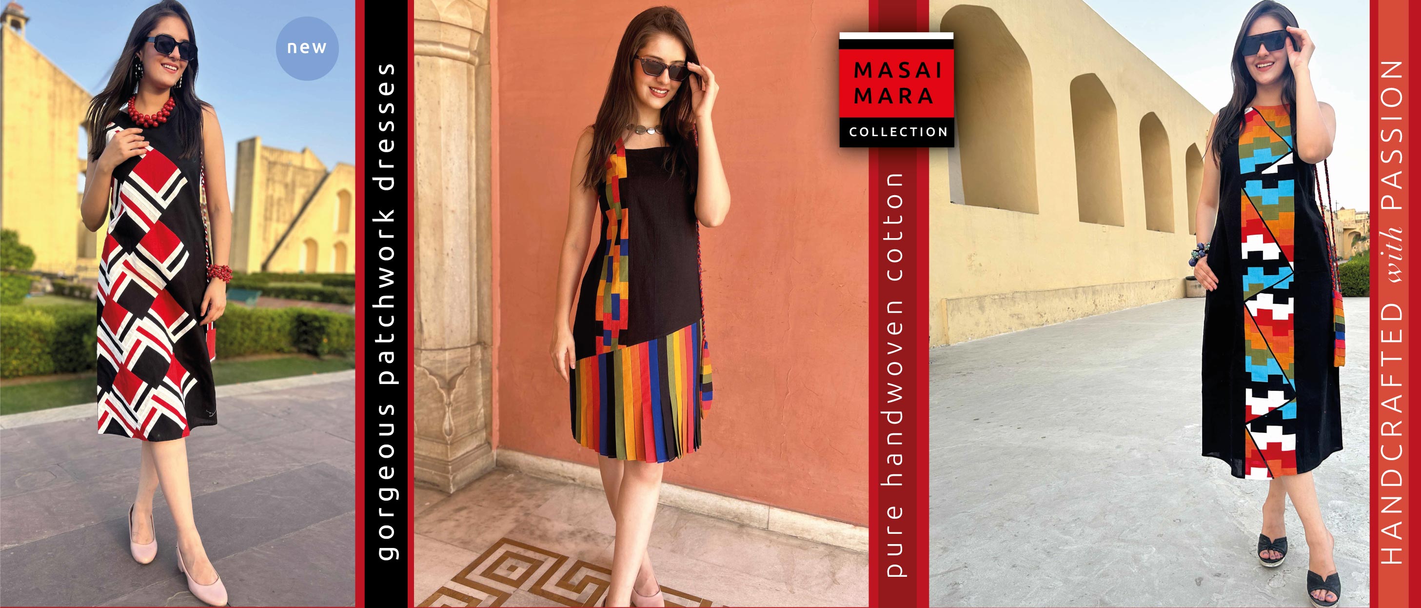 California Colors - Artistic collection of handcrafted patchwork dresses made with high...
