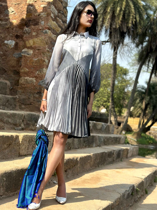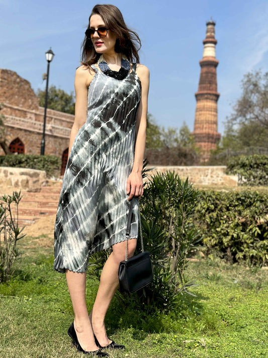CAROL ANSEL ADAMS INSPIRED PURE SILK SHIBORI PLEATED DRESS