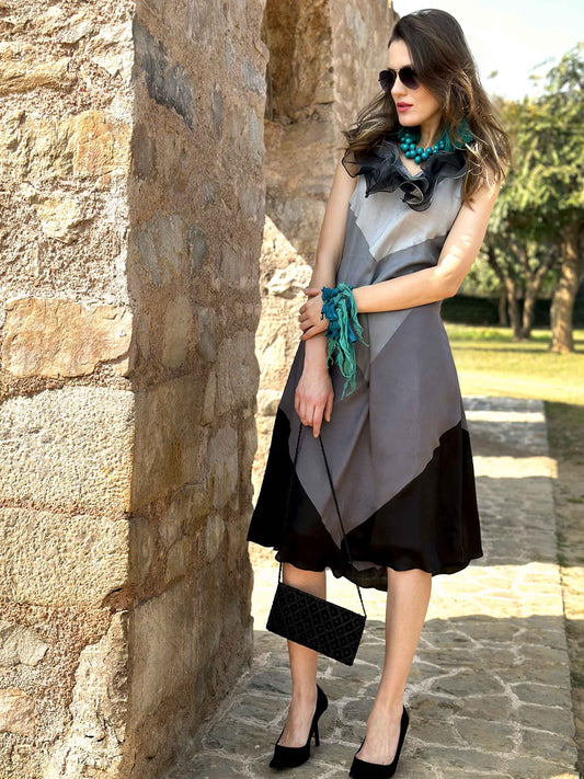 CRYSTAL ANSEL ADAMS INSPIRED PURE SILK PATCHWORK DRESS