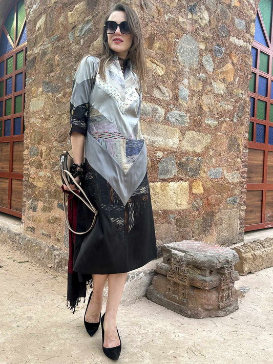 CATHERINE ANSEL ADAMS INSPIRED PATOLA SILK PATCHWORK DRESS