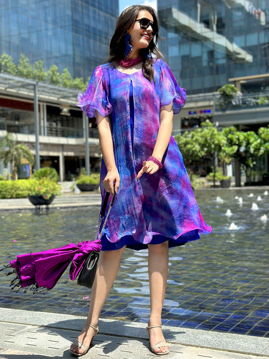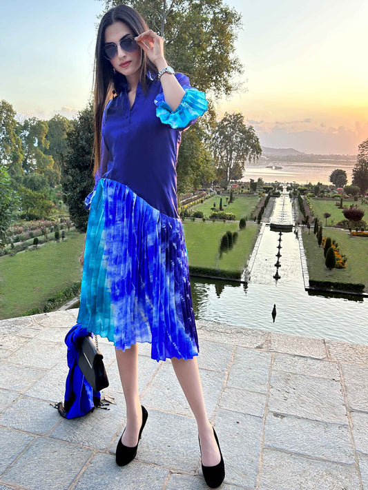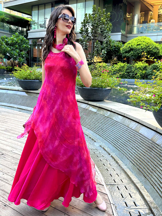 DONNA FESTIVE FLAMBOYANCE PURE SILK PLEATED DRESS