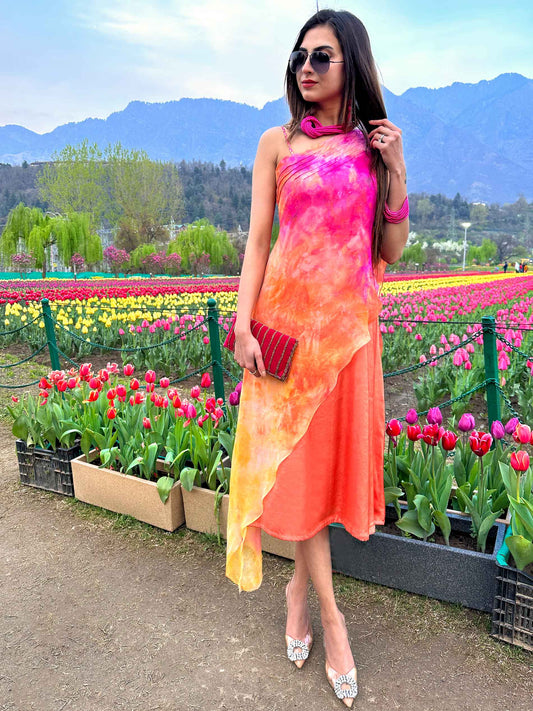 DIXIE FESTIVE FLAMBOYANCE PURE SILK PLEATED DRESS