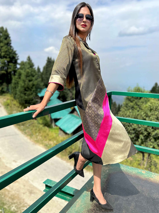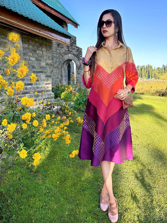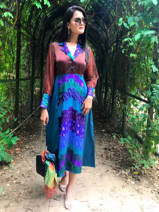 KENDRA GORGEOUS KASHMIR PATOLA SILK PATCHWORK DRESS