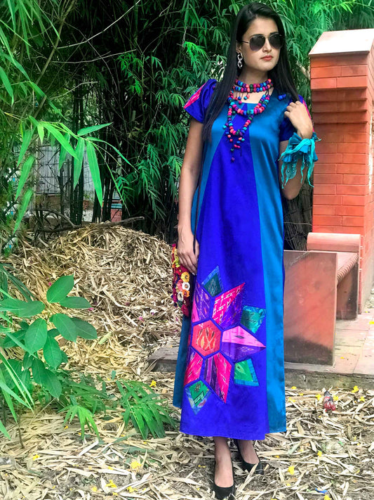 KAROLINE GORGEOUS KASHMIR PATOLA SILK PATCHWORK DRESS