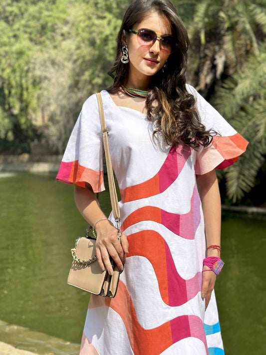 BEVERLY FRENCH RIVIERA HAND WOVEN COTTON PATCHWORK DRESS