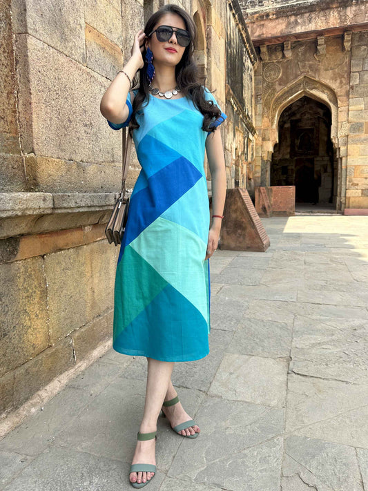 HELEN FESTIVE FLAIR HAND WOVEN COTTON PATCHWORK DRESS