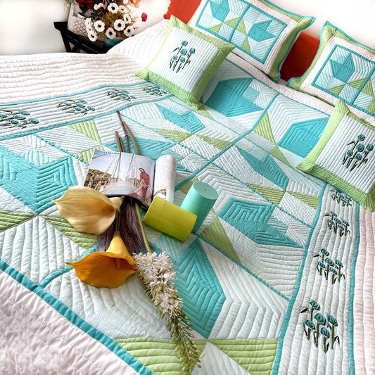 VICKY GORGEOUS KASHMIR PATOLA SILK QUILTED BEDCOVER SET
