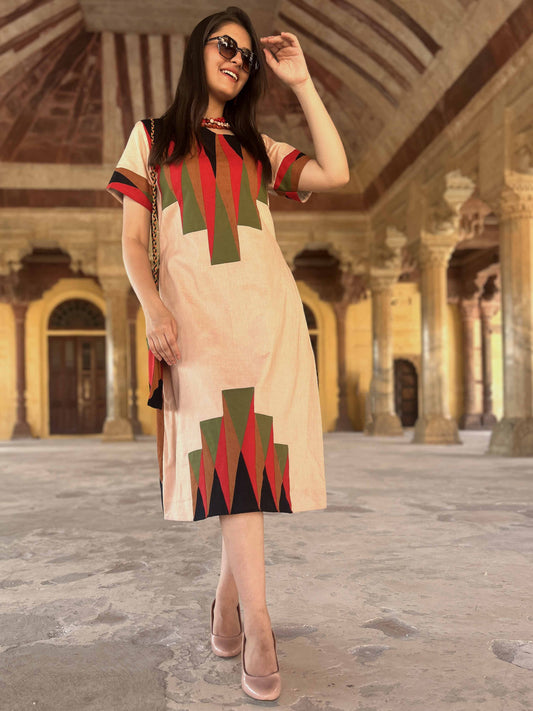 MEESHA MASAI MARA HAND WOVEN COTTON PATCHWORK DRESS