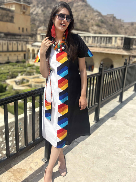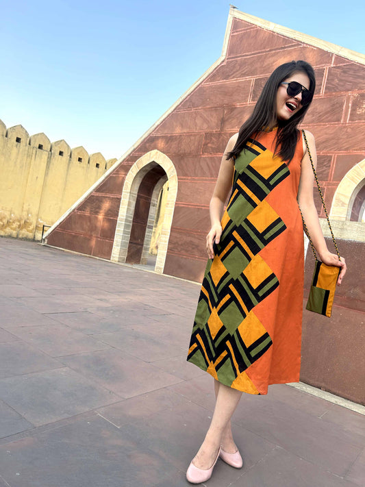MHINA MASAI MARA HAND WOVEN COTTON PATCHWORK DRESS