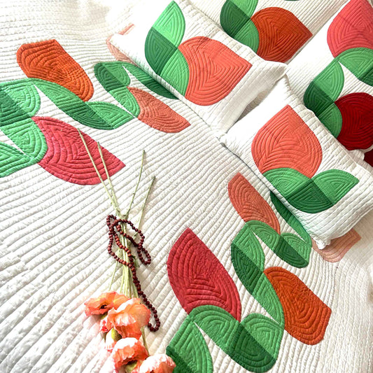 DAPHNE TULIPS OF KASHMIR PATCHWORK QUILTED BEDCOVER SET