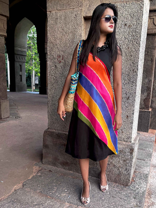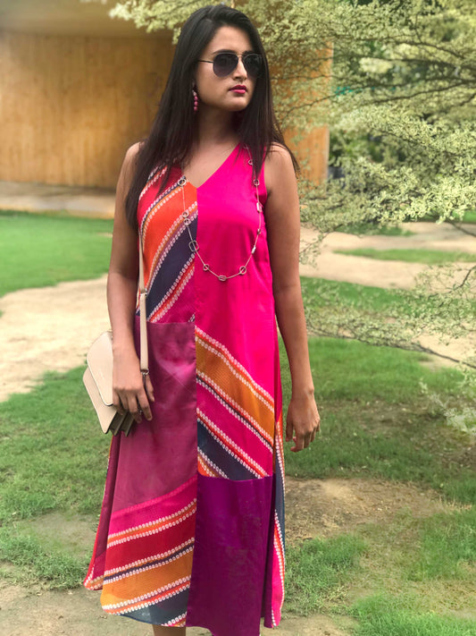 SKYLER SANTORINI STRIPES SILK KOTA DORIA REVERSIBLE DRESS