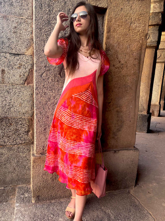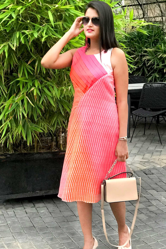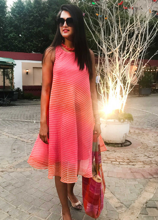 SCARLET SANTORINI STRIPES SILK KOTA DORIA DRESS