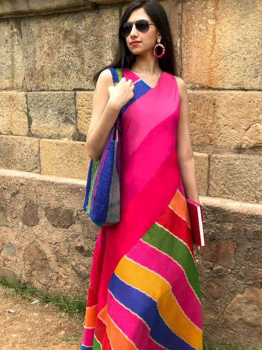 SAVANNA SANTORINI STRIPES SILK KOTA DORIA REVERSIBLE DRESS
