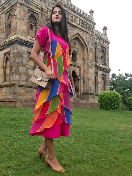 SERENA SANTORINI STRIPES SILK KOTA DORIA DRESS