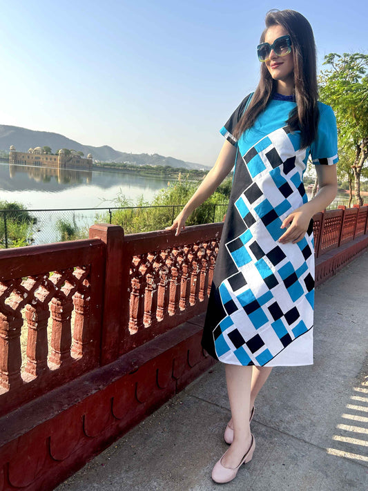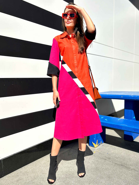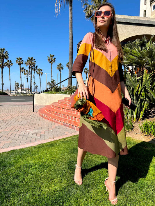 MELINDA CALIFORNIA COLORS HAND WOVEN COTTON PATCHWORK DRESS