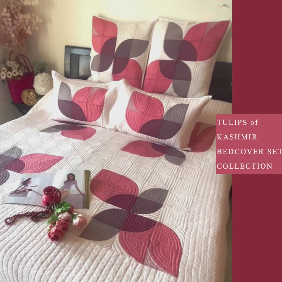 DEBORAH TULIPS OF KASHMIR PATCHWORK QUILTED BEDCOVER SET
