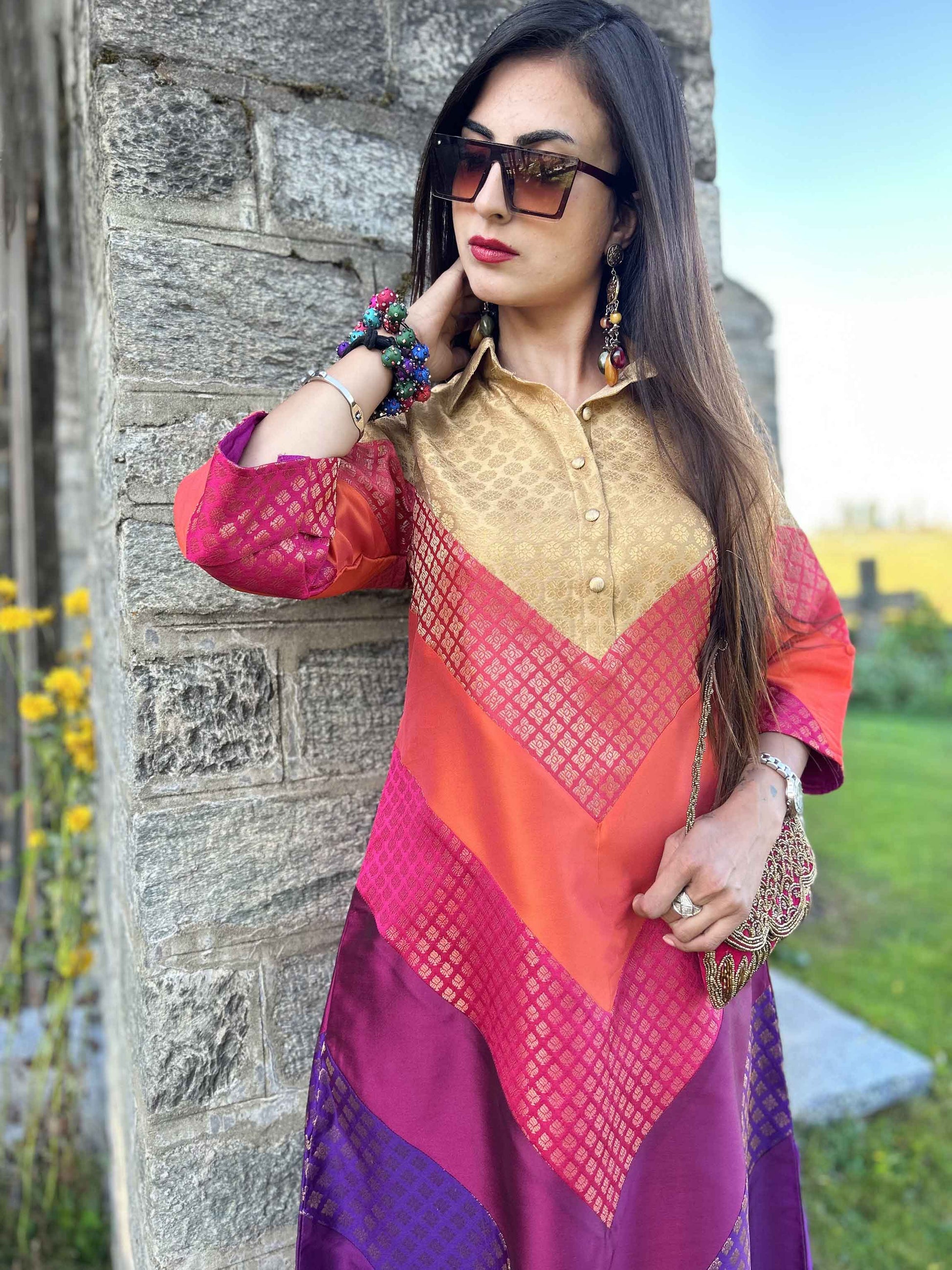 This dress is made with chevrons in a melange of jewel toned Brocade and Taffeta Silk.