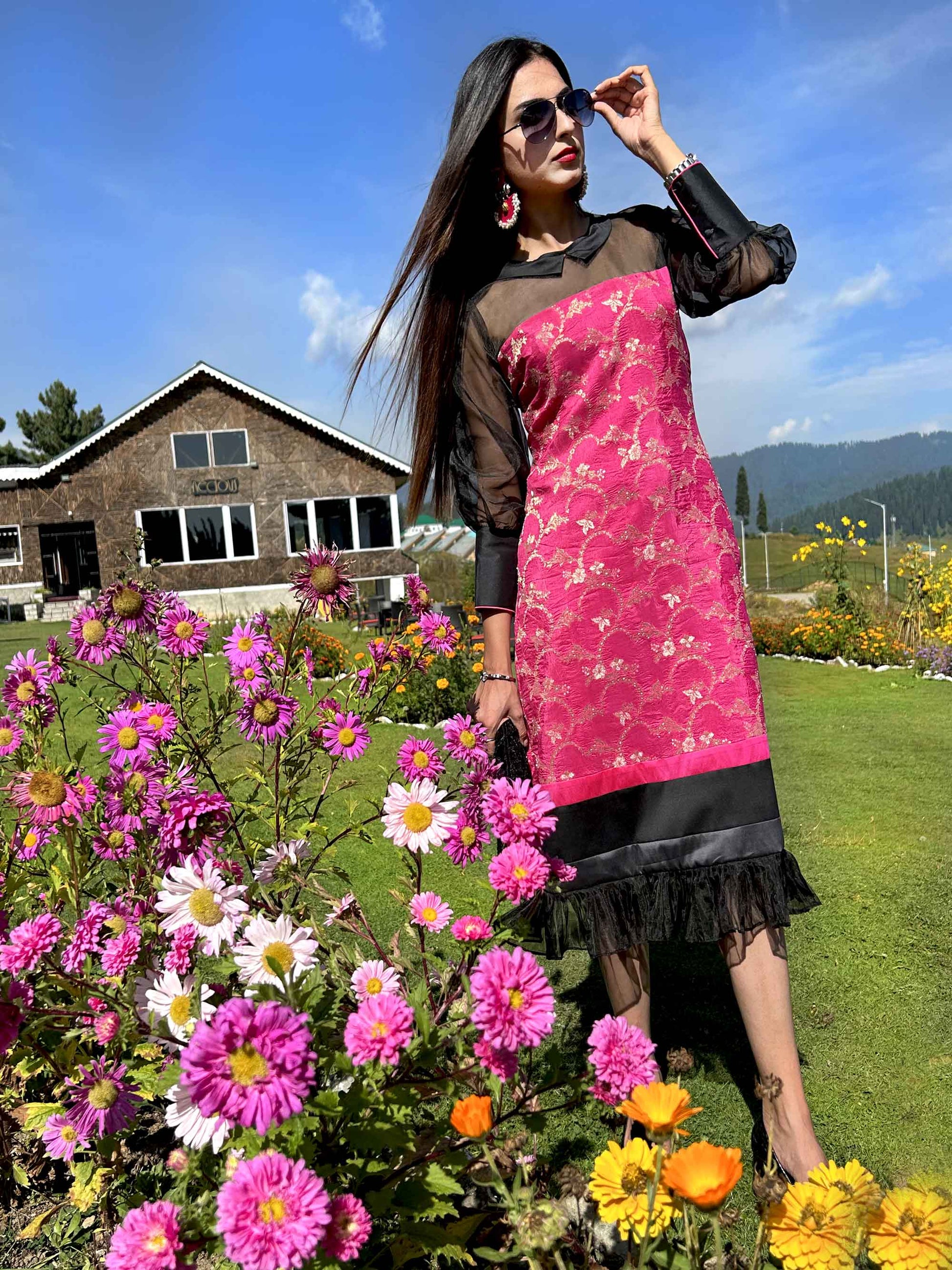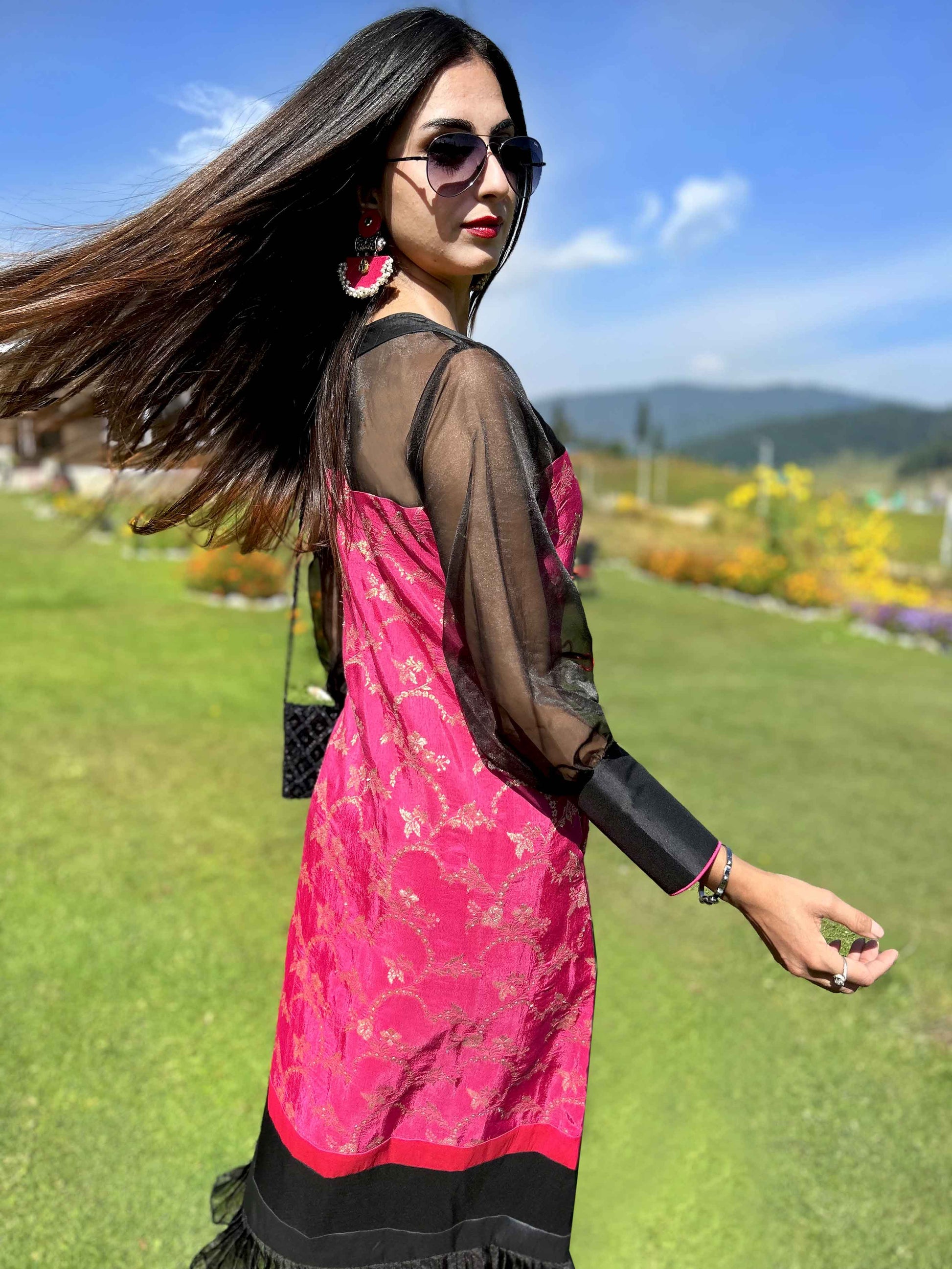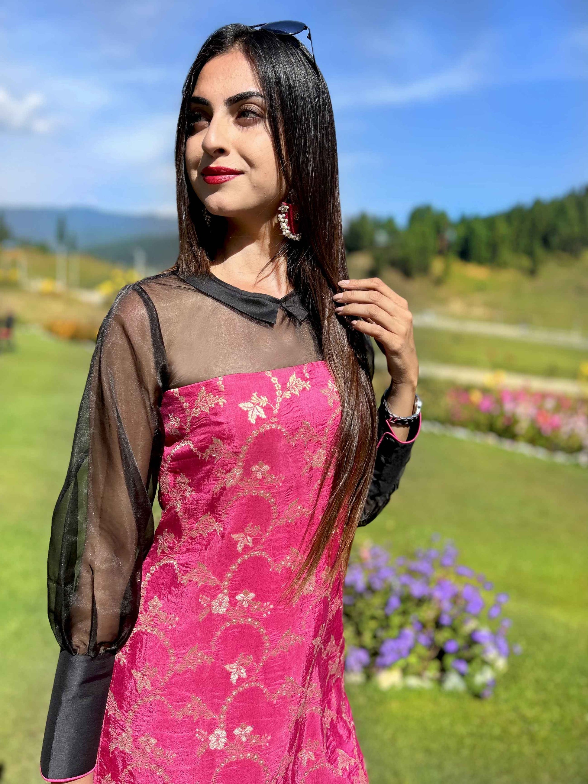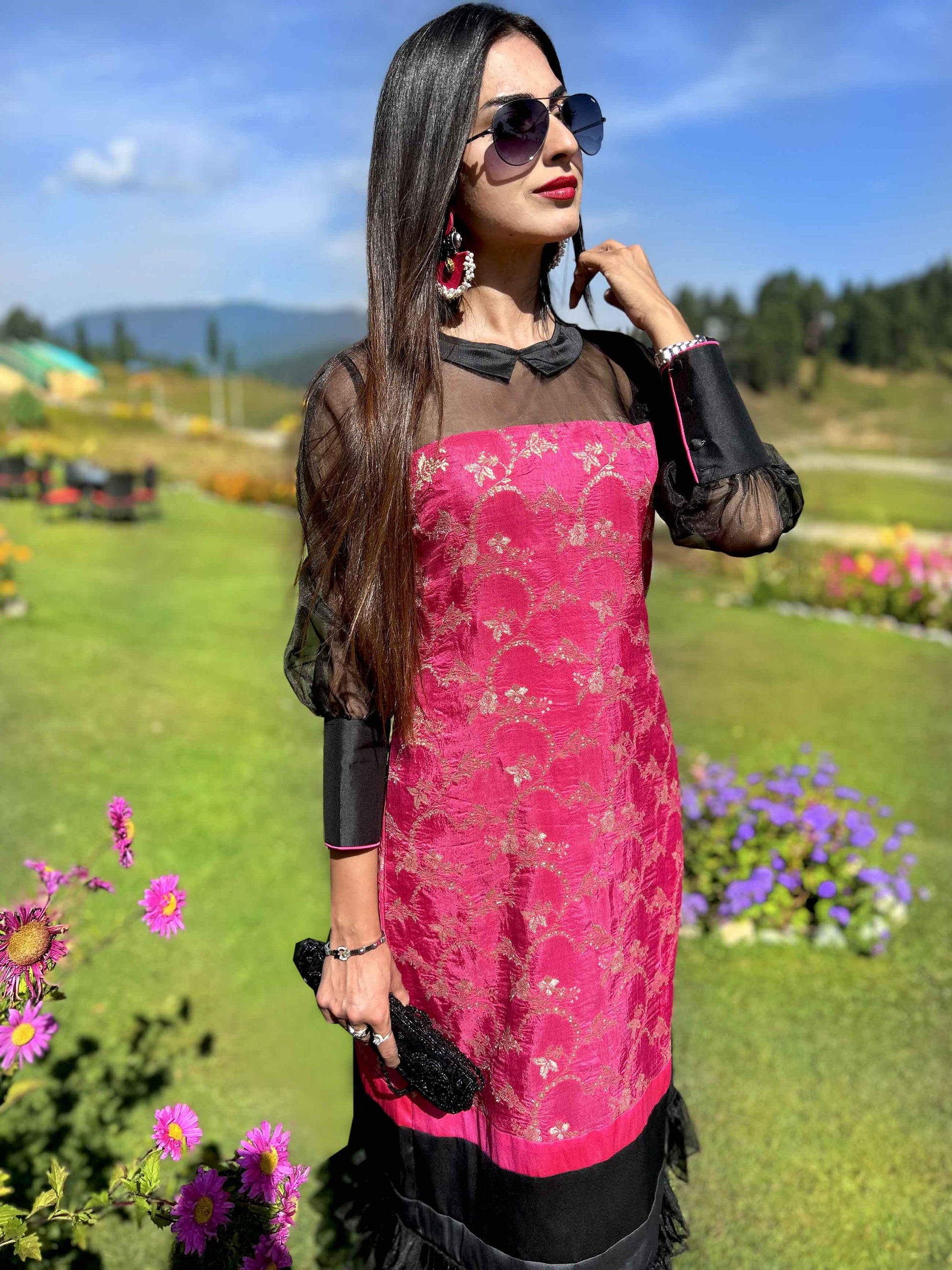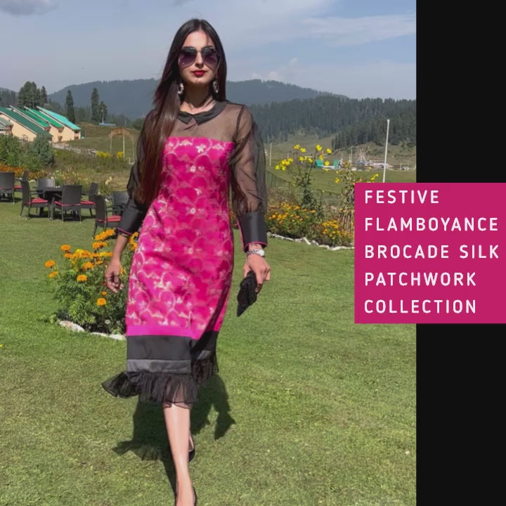 This dress made with Fuchsia Pink Brocade, Taffeta Silk and Black Organza would cast a spell this festive season!