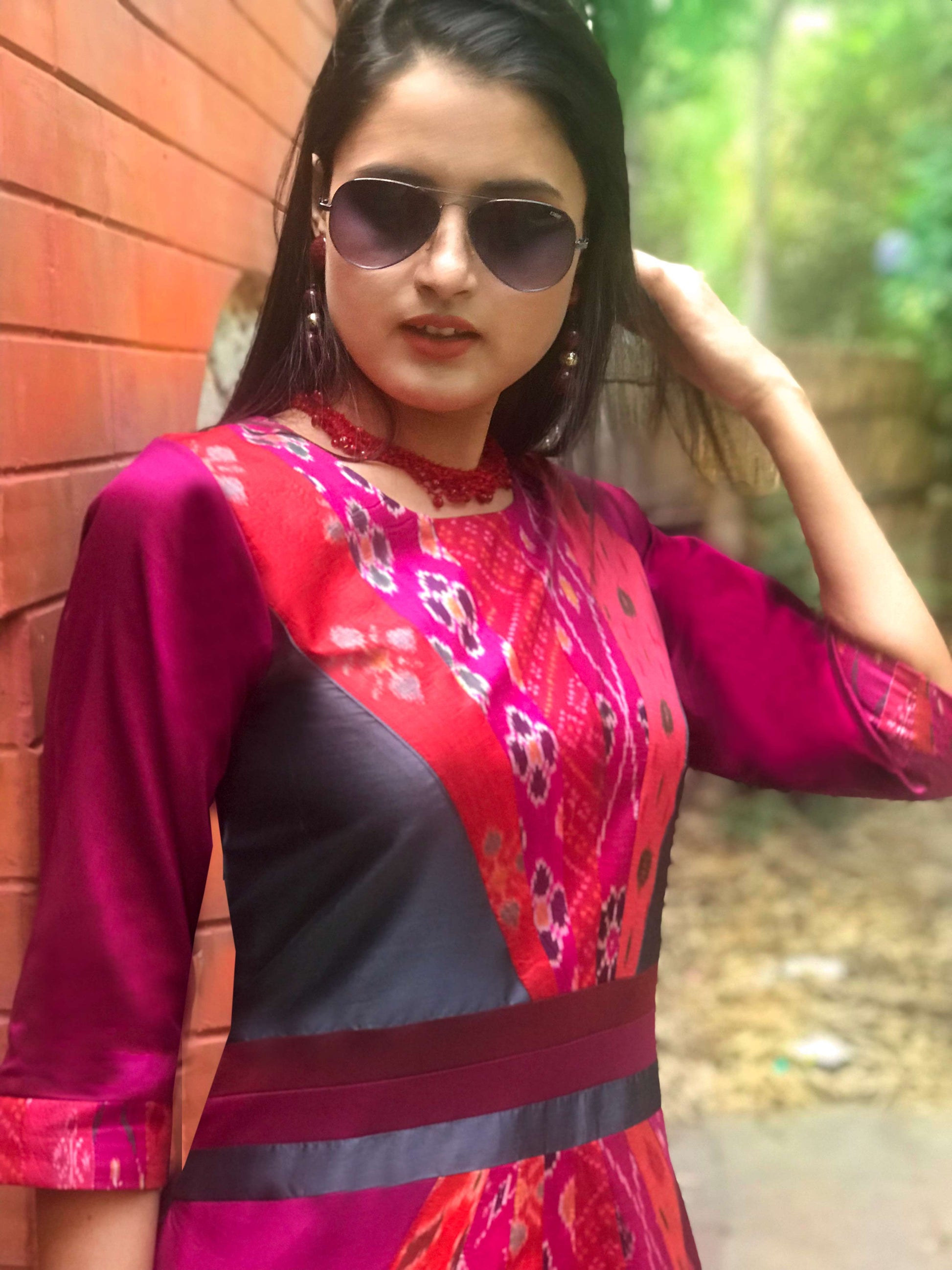FRANCINE FESTIVE FLAMBOYANCE PATOLA SILK PATCHWORK DRESS