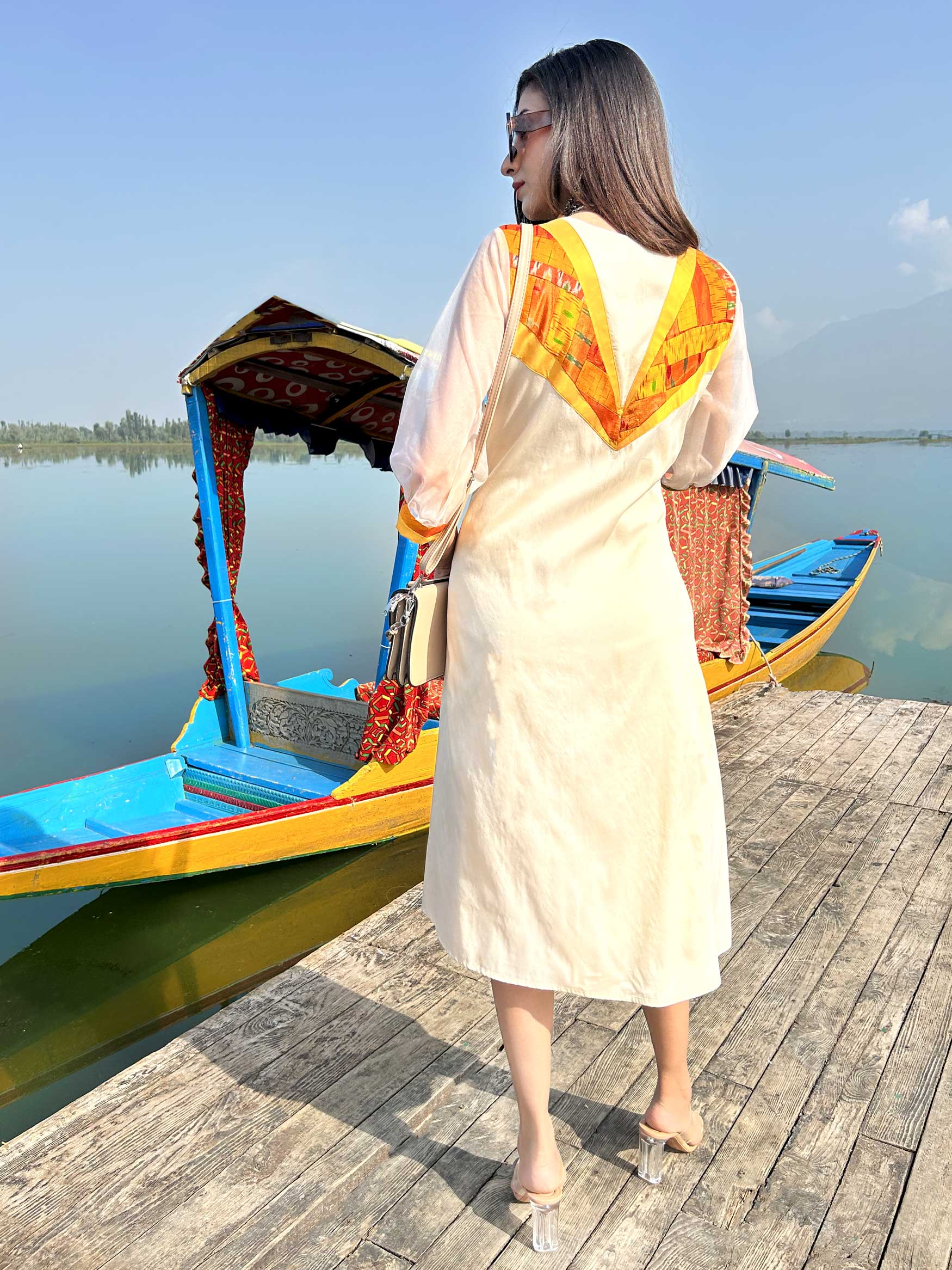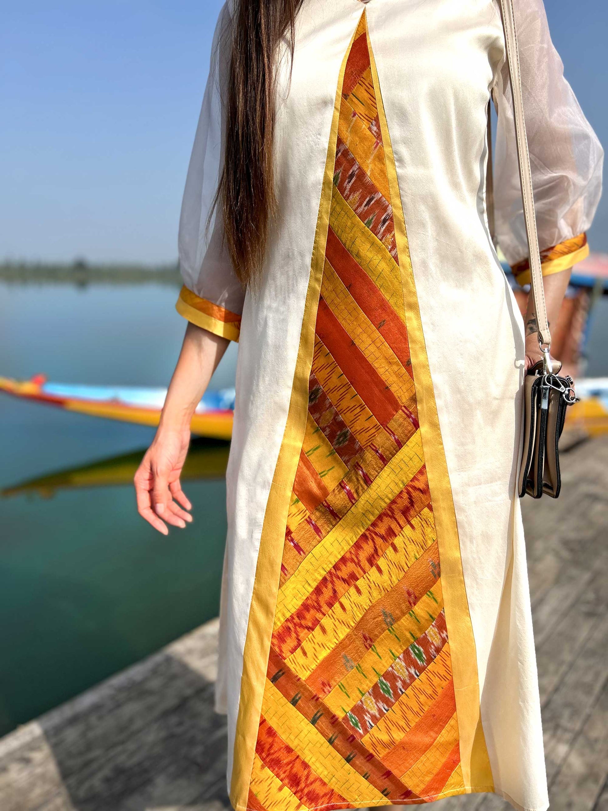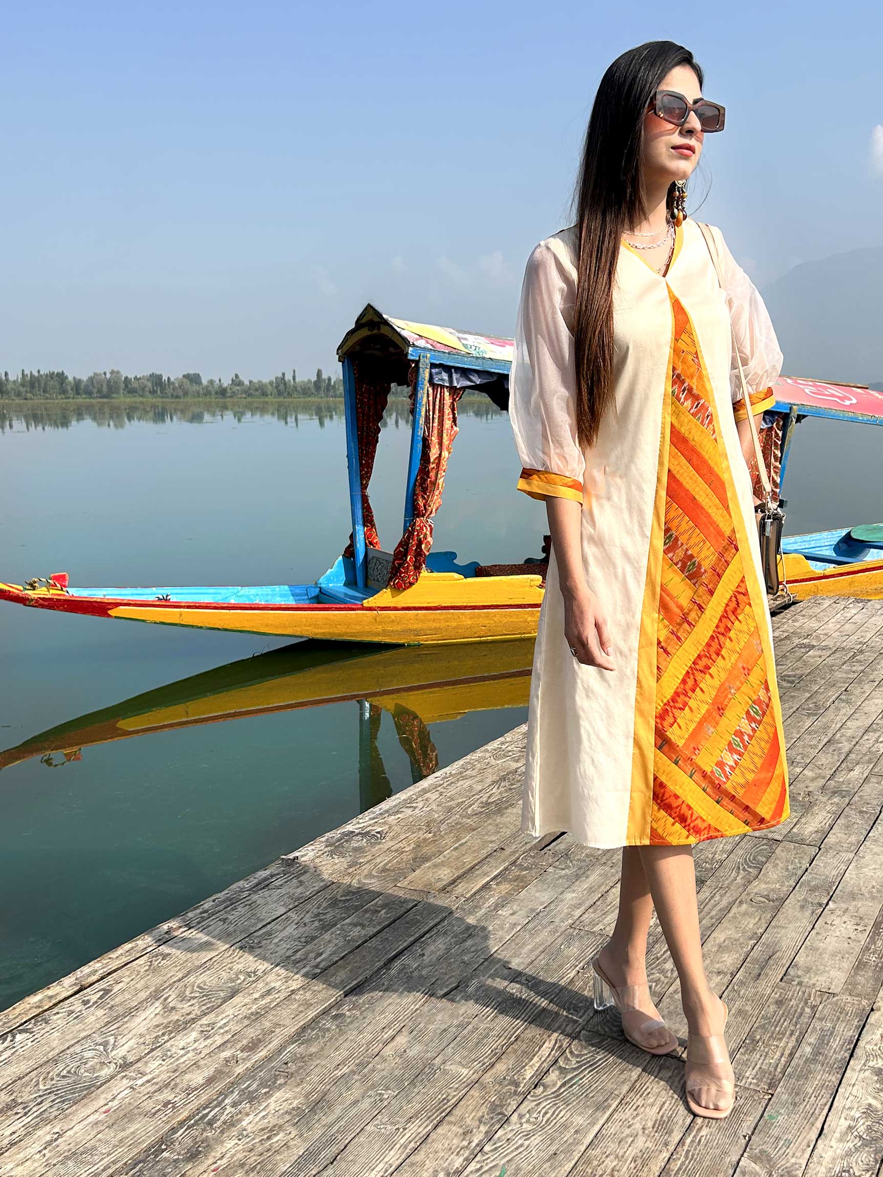 Our Gorgeous Kashmir collection is inspired by the charming beauty of Kashmir. The colourful Patola Silk Patchwork Dresses in this collection use patchwork constructed in intricate geometrical shapes and are inspired by the flora and fauna of Kashmir Valley.