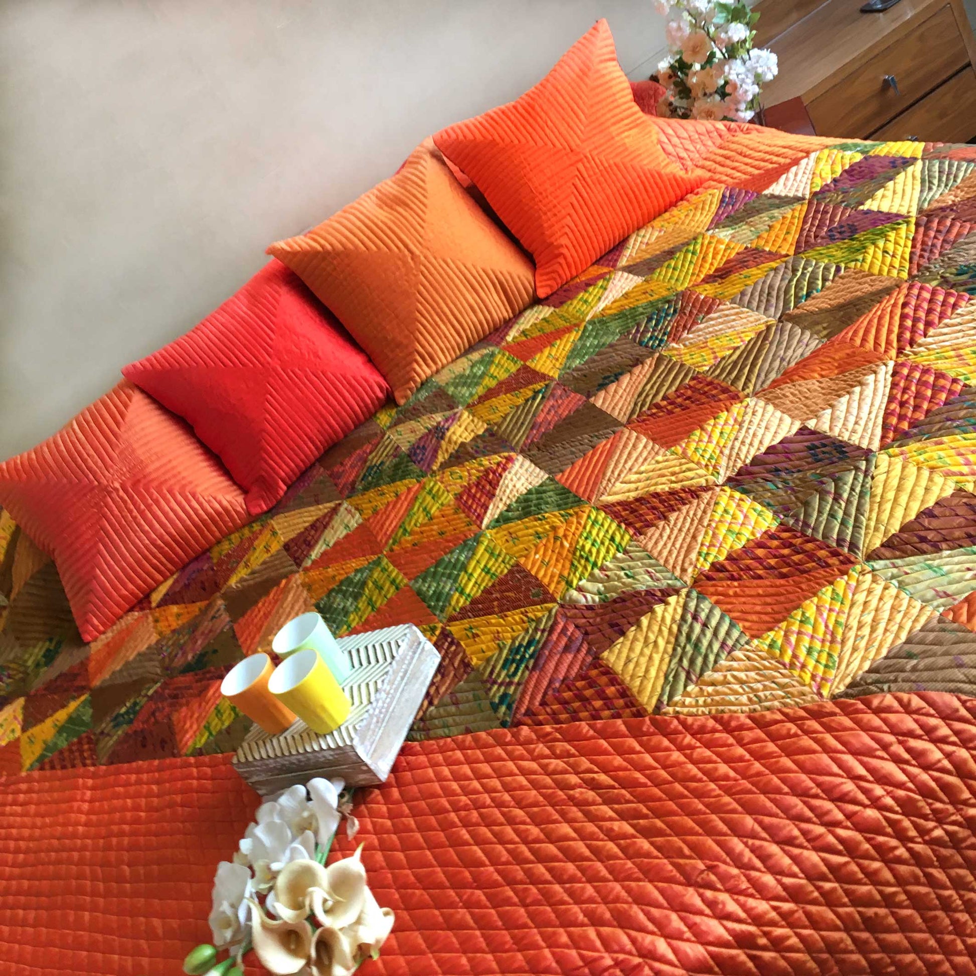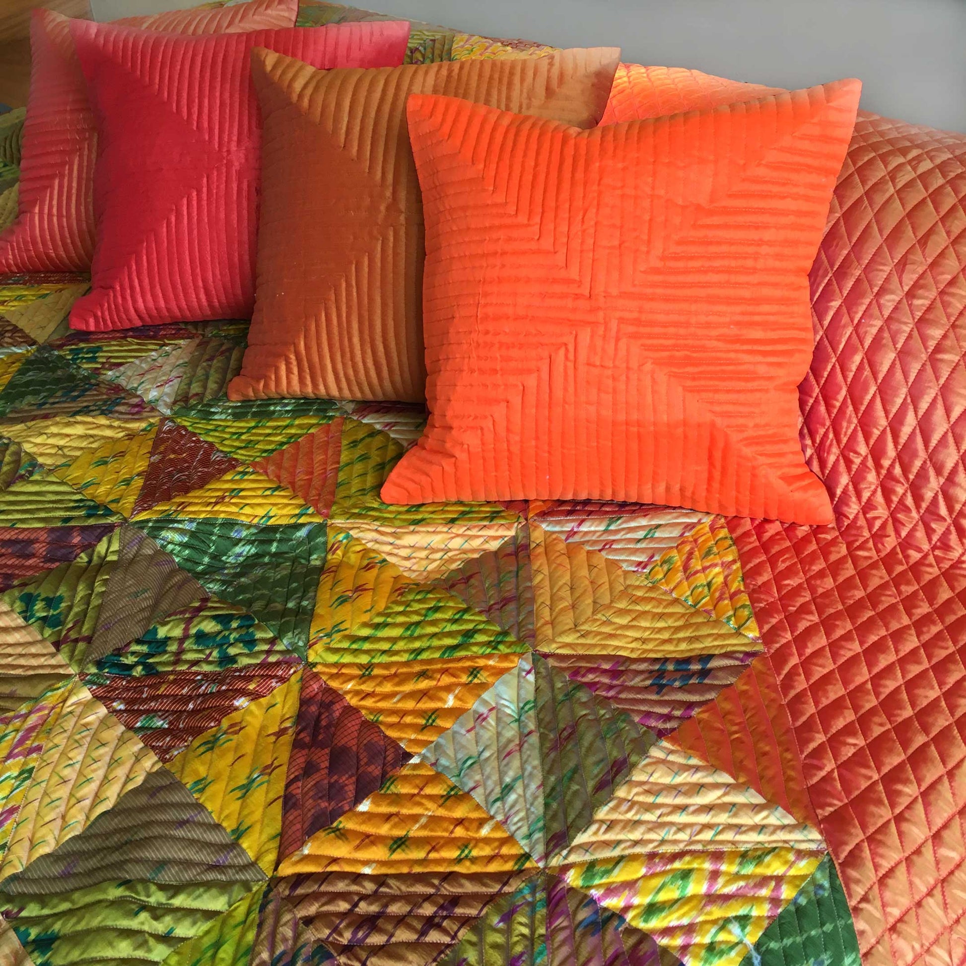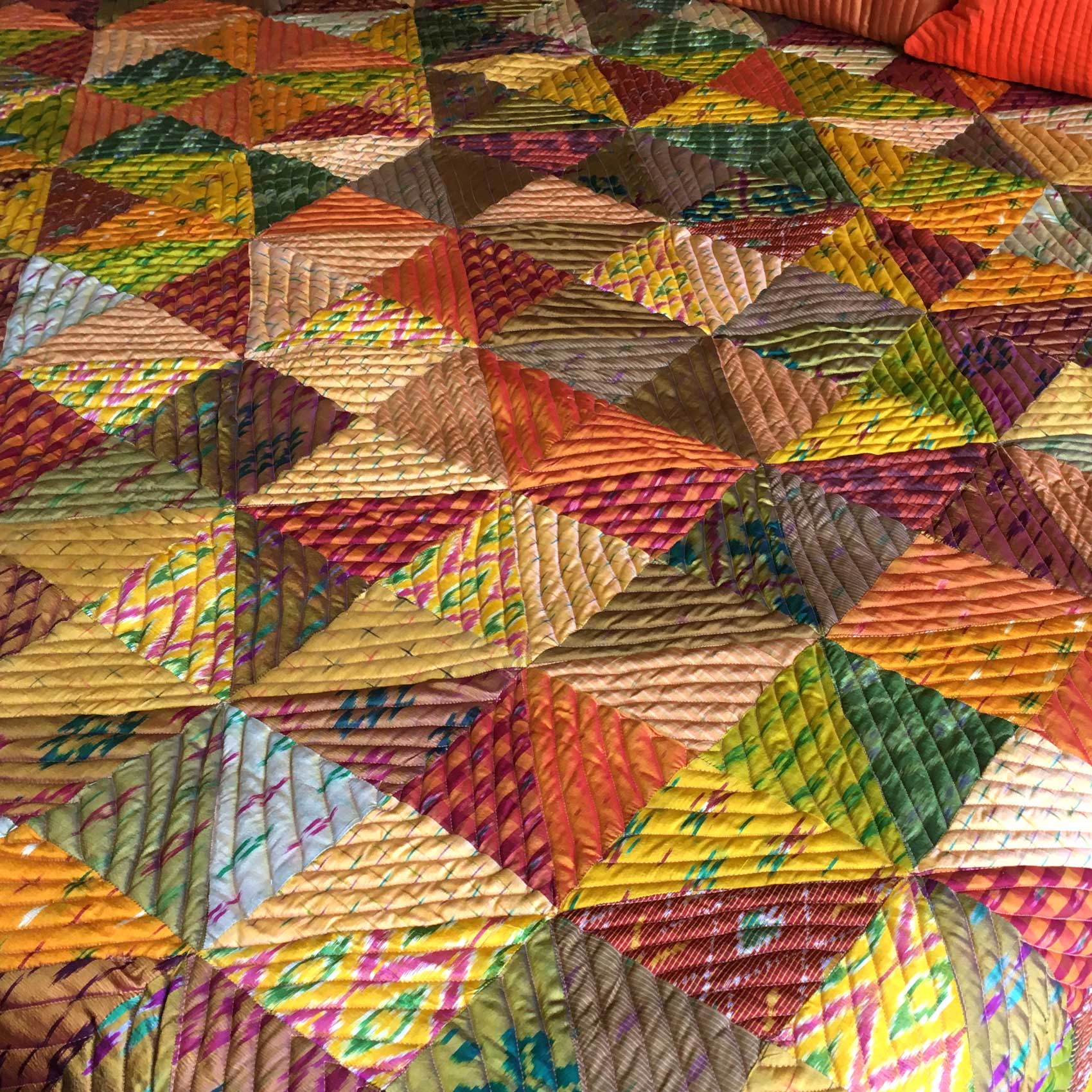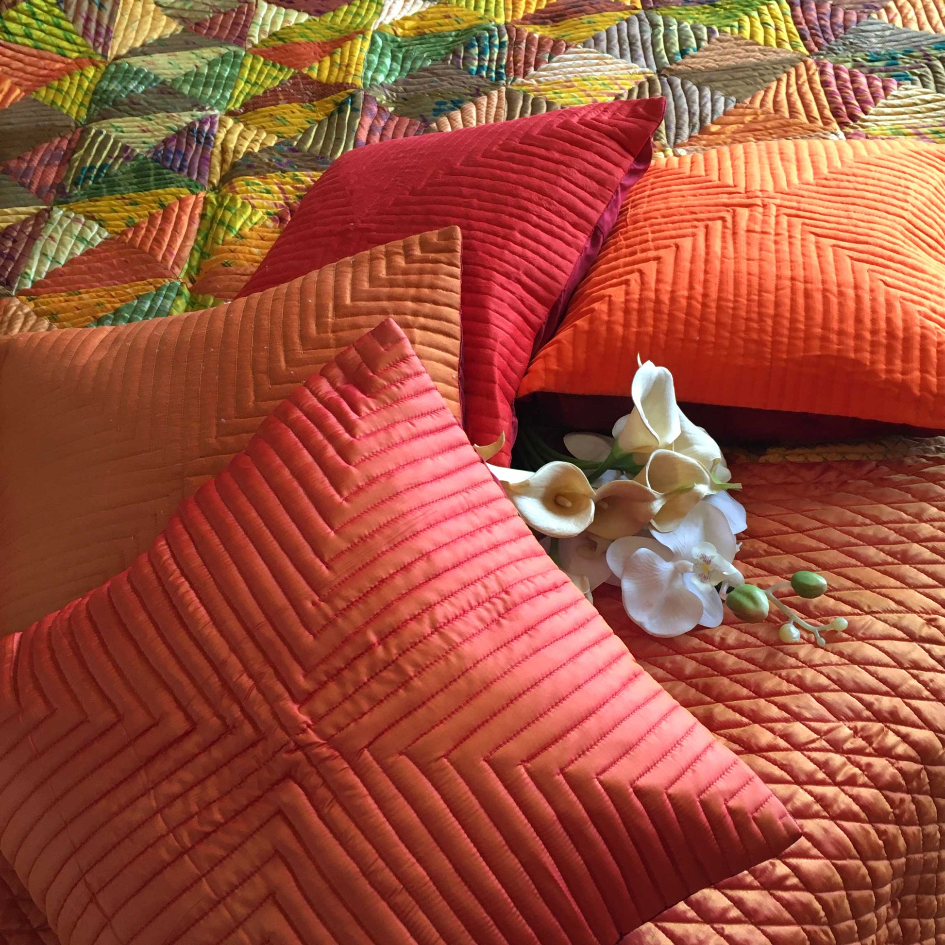 At Karmadori, we love our Handcrafted Bedcovers. Painstakingly handcrafted, this Patola Silk Quilted Bedcover is created with 100s of super soft Patola Silk Patches mixed with colorful Taffeta Silk patches in geometrical shapes and quilted in intricate designs.