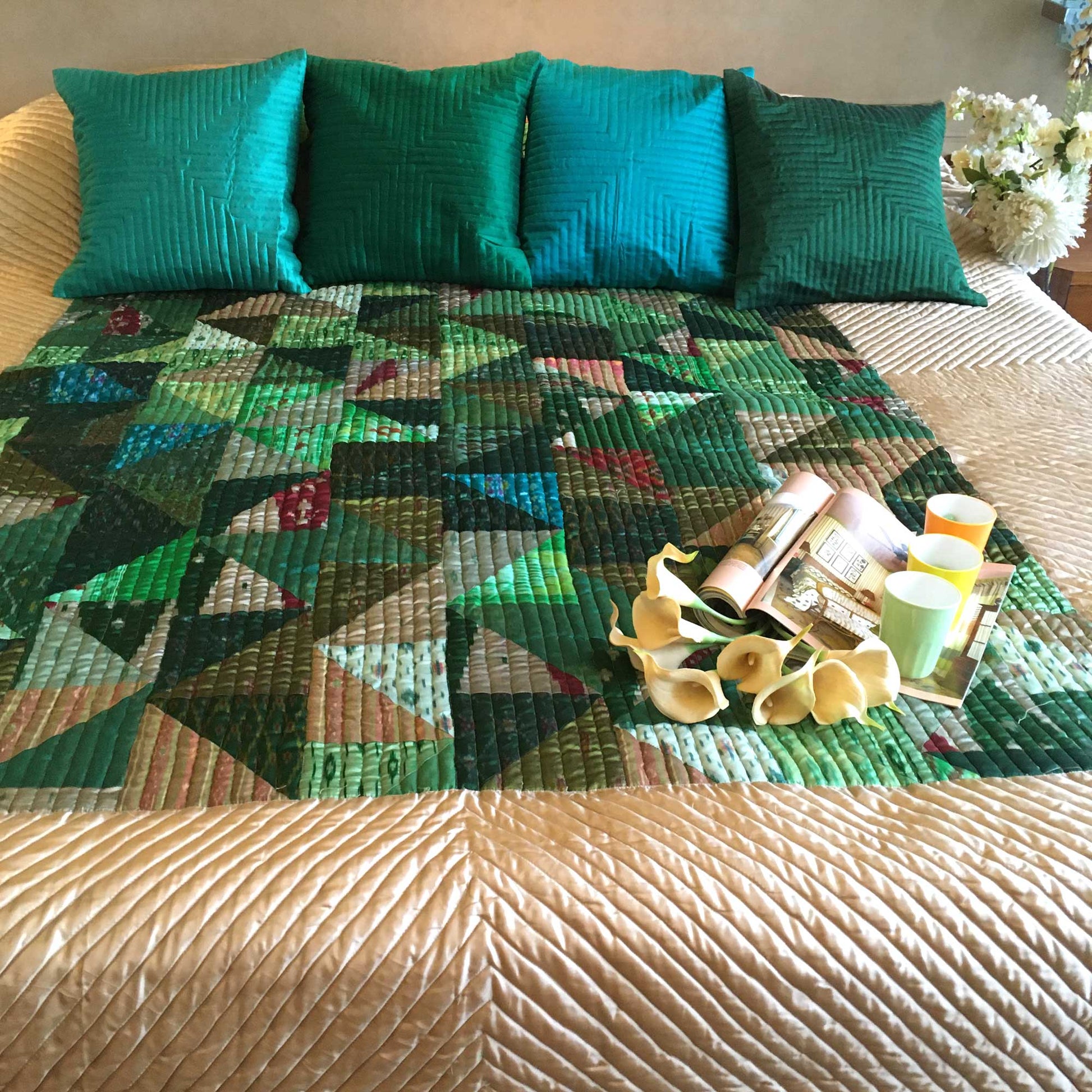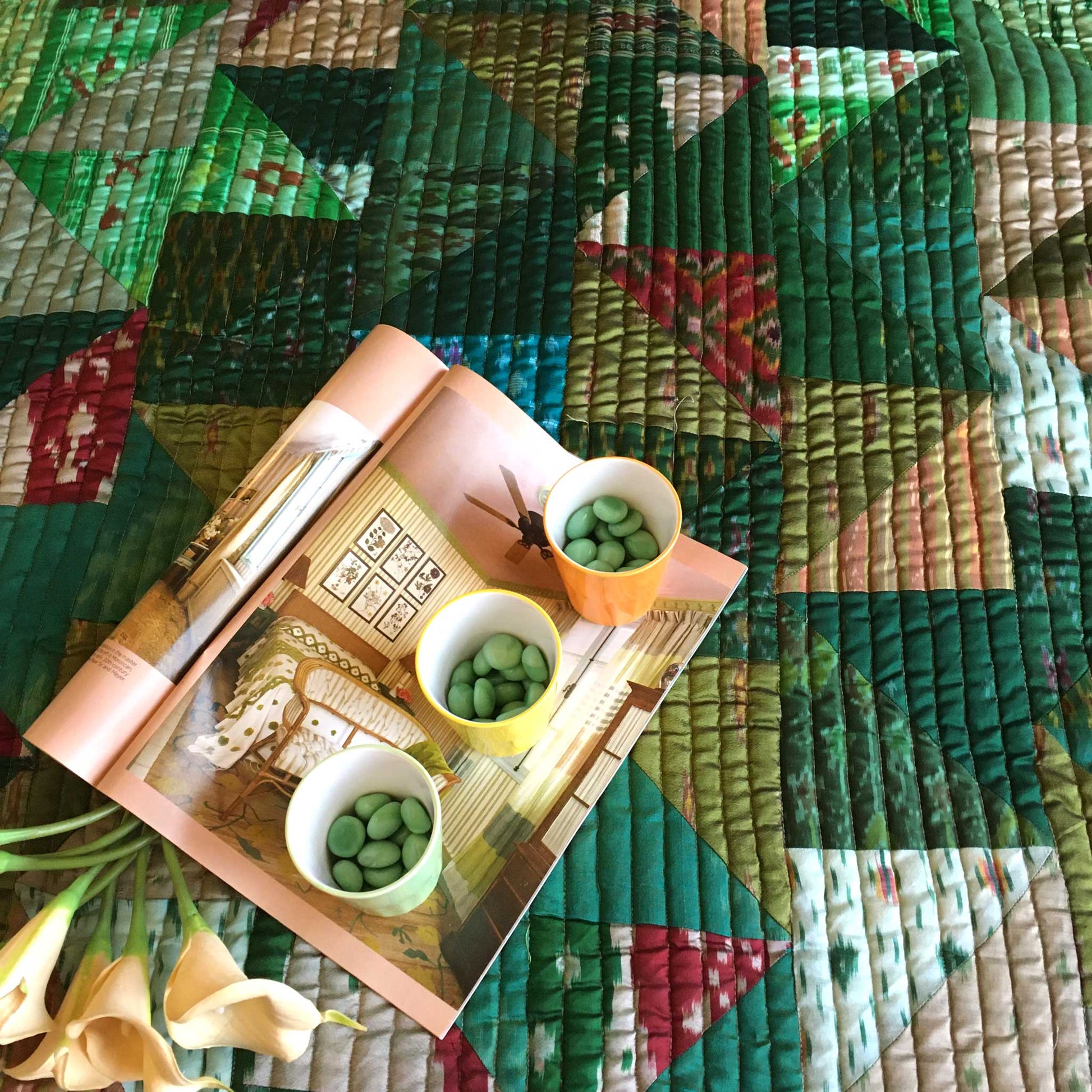 At Karmadori, we love our Handcrafted Bedcovers. Painstakingly handcrafted, this Patola Silk Quilted Bedcover is created with 100s of super soft Patola Silk Patches mixed with colorful Taffeta Silk patches in geometrical shapes and quilted in intricate designs.